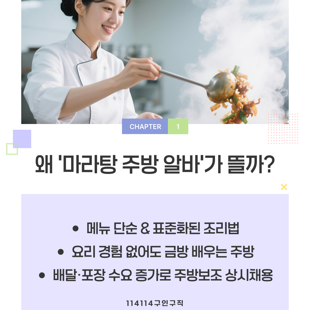 서울 지역 마라탕 주방 일자리를 찾고 있다면, 오늘 바로 114114구인구직에서 가까운 매장의 채용정보를 확인해 보세요.